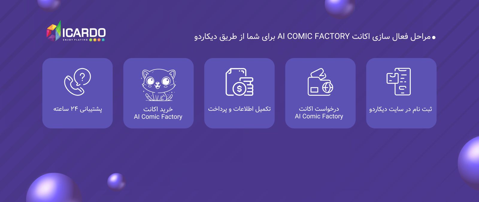 دیکاردو اولین وبسایت در زمینه پرداختهای درون برنامهای میباشد که موفق به کسب مجوز رسمی از بنیاد ملی بازیهای رایانهای شده است. همچنین دیکاردو با ایجاد سرورهای امن و نیروهای متخصص و پشتیبانی 24 ساعته، همیشه آماده خدمت رسانی به مشتریان خود می باشد پس ما با افتخار یکی از معتبرترین سایتهای خرید اکانت هوش مصنوعی AI Comic Factory هستیم.