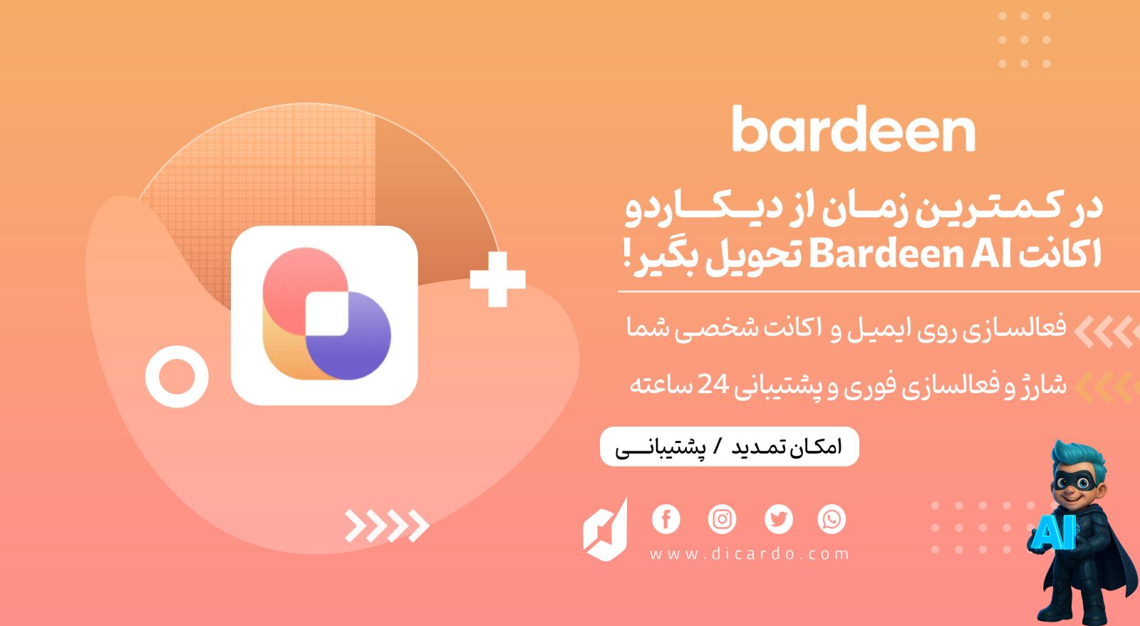 دیکاردو صرفاً به عنوان یک تأمینکننده (Provider) و فعالکننده رسمی سرویسها و اشتراکها فعالیت میکند. هدف ما این است که کاربران بتوانند با هزینهای کمتر و بهصرفهتر، به خدمات بینالمللی و اشتراکهای حرفهای مانند Cursor، Adobe، Google Workspace,اکانتهای پرمیوم و دیگر پلتفرمها دسترسی پیدا کنند.