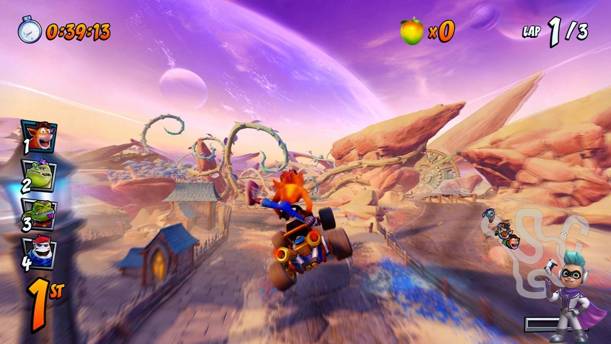 تمام پاور-آپهای کلاسیک بازی مثل موشکهای ردیاب، بمبهای قلقلی، شیشههای معجون و البته ماسک شکستناپذیر هم برگشتن تا وسط مسابقه حسابی از خجالت رقیباتون در بیاین. بازی پر از میانبرهای مخفی و سخته که پیدا کردن و استفاده ازشون میتونه سرنوشت مسابقه رو عوض کنه. کنترل ماشینها خیلی روون و دقیقه و هر شخصیت، ویژگیهای رانندگی خاص خودشو داره (سرعت، شتاب یا دست فرمون بهتر).