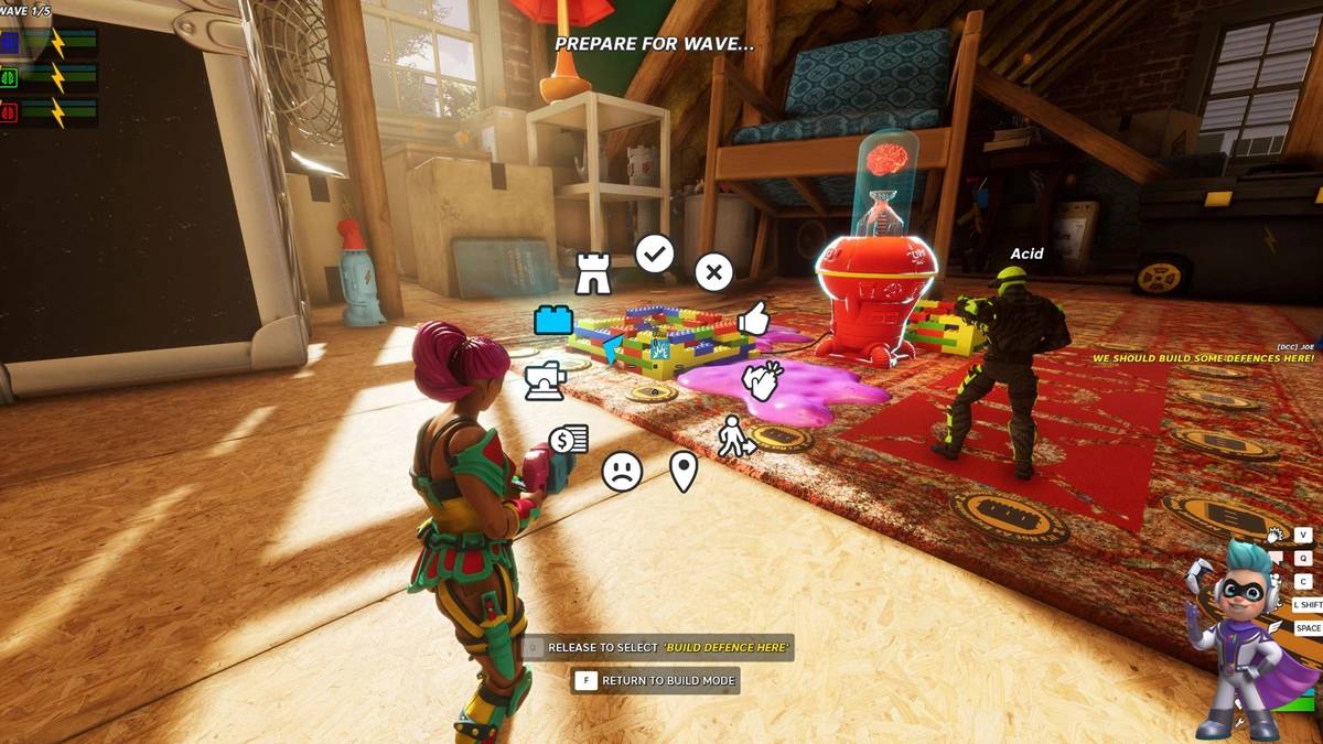 ۱. فاز ساخت و ساز: قبل از هر موج حمله، شما یه زمان مشخصی برای آماده شدن دارین. باید تو محیط بزرگ و باحال بازی (که مثلاً یه اتاق خواب یا یه فروشگاه اسباببازیه) بگردین، سکه و باتری پیدا کنین و باهاشون تله، دیوار دفاعی و برجکهای نگهبانی بسازین.