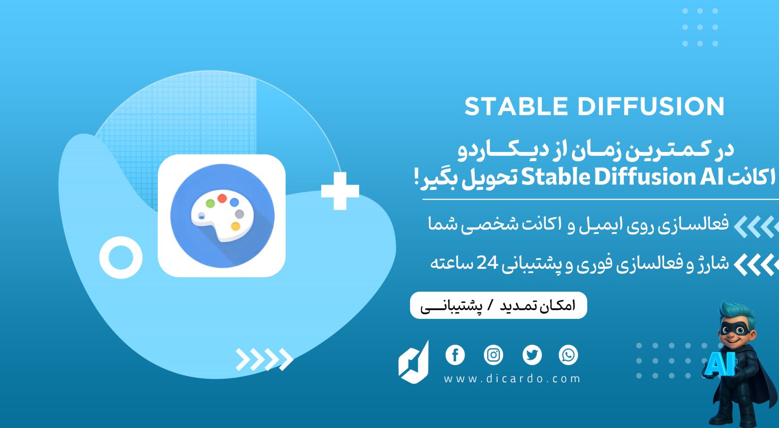 ایجاد محتوای بصری برای وبسایتها و شبکههای اجتماعی: Stable Diffusion میتواند به تولیدکنندگان محتوا و مدیران شبکههای اجتماعی کمک کند تا تصاویر منحصر به فرد و حرفهای برای پستها و مقالات خود تولید کنند. این تصاویر میتوانند به بهبود جذابیت و تعامل کاربران با محتوا کمک کنند.