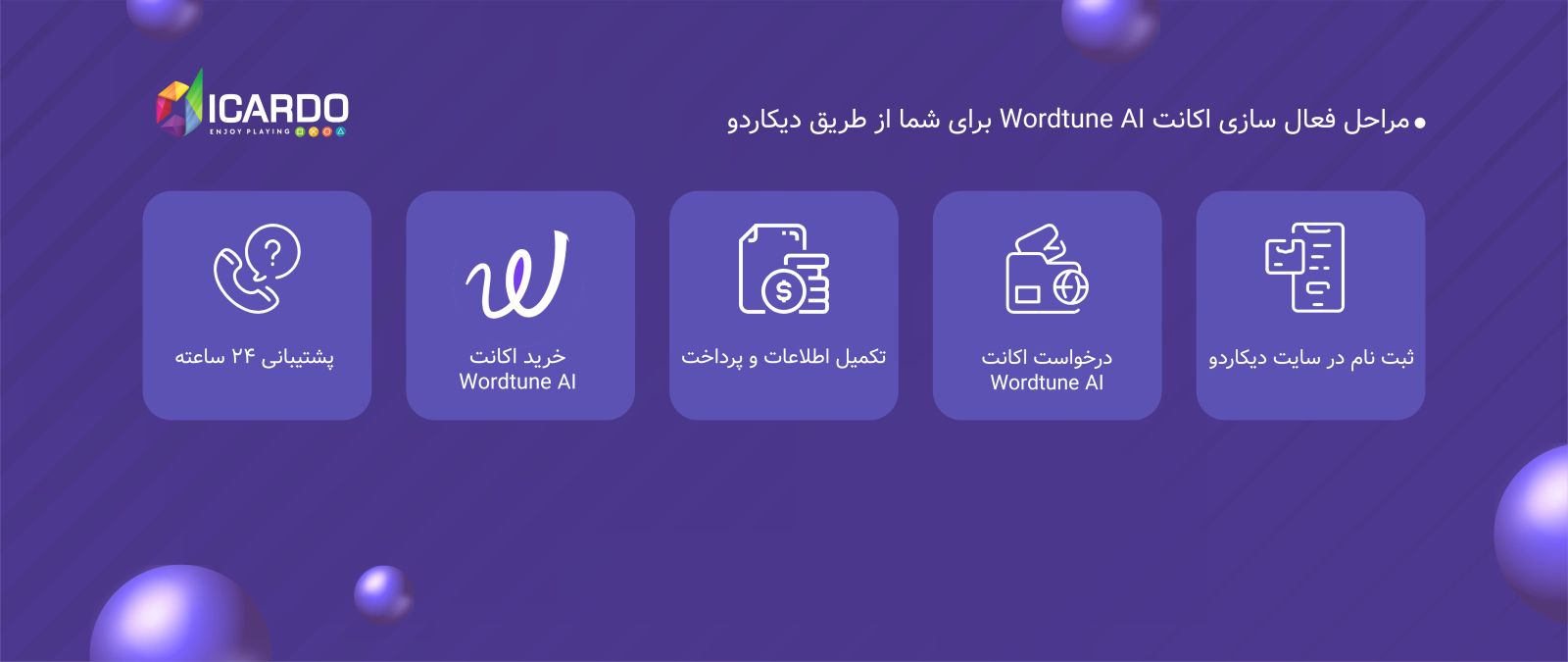 اکانت Wordtune کار شما را در بازنویسی و خلاصه نویسی راحت میکند. متنهایی که با استفاده از این ابزار نوشته میشوند، غلطهای املایی کمتری داشته و از کیفیت بیشتری برخوردار هستند. برای خرید اکانت Wordtune وردتون میتوانید به سایت دیکاردو مراجعه نمایید. همچنین در صورت تمایل میتوانید از بخش پشتیبانی مجموعه استفاده نمایید.