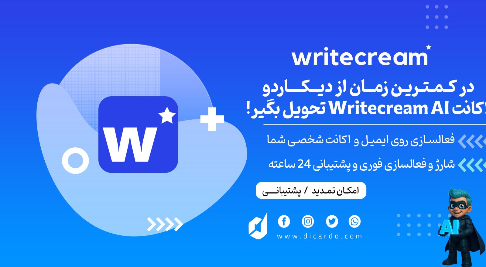 Writecream یک ابزار نوشتاری مبتنی بر هوش مصنوعی است که به تولید محتوا در قالبهای مختلف، از جمله مقالهها، ایمیلها، پستهای شبکههای اجتماعی، تبلیغات و بسیاری دیگر کمک میکند. این پلتفرم به نویسندگان، بازاریابان دیجیتال و کسبوکارها امکان میدهد تا محتوای باکیفیت را بهصورت سریع و خودکار تولید کنند. Writecream از فناوری Natural Language Processing (NLP) و Machine Learning (ML) برای تولید محتوا استفاده میکند.